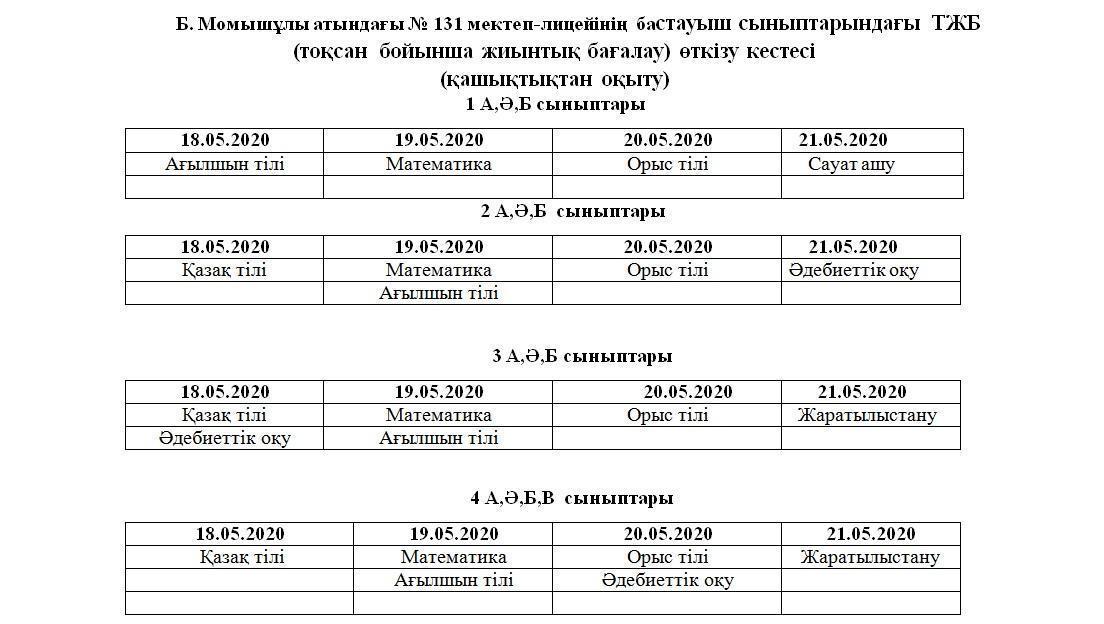 14 май 2020 0 1 2 3 4 5 Б. Момышұлы атындағы № 131 мектеп-лицейінің бастауыш сыныптарындағы ТЖБ Осы беттің QR-коды:QR-код этой страницы: