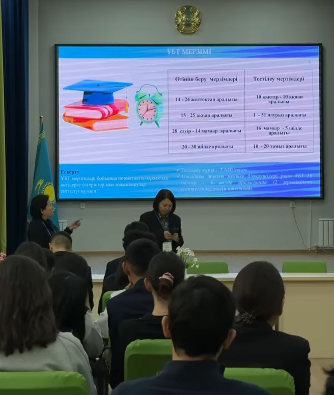 Ұлттық Тестілеу орталығы филиалының басшысы Жұмабике Шаймерденовна және Медеу ауданының ҰБТ бойынша жауапты тұлғасы Улжанна Өміртаевнаның қатысуымен 1
