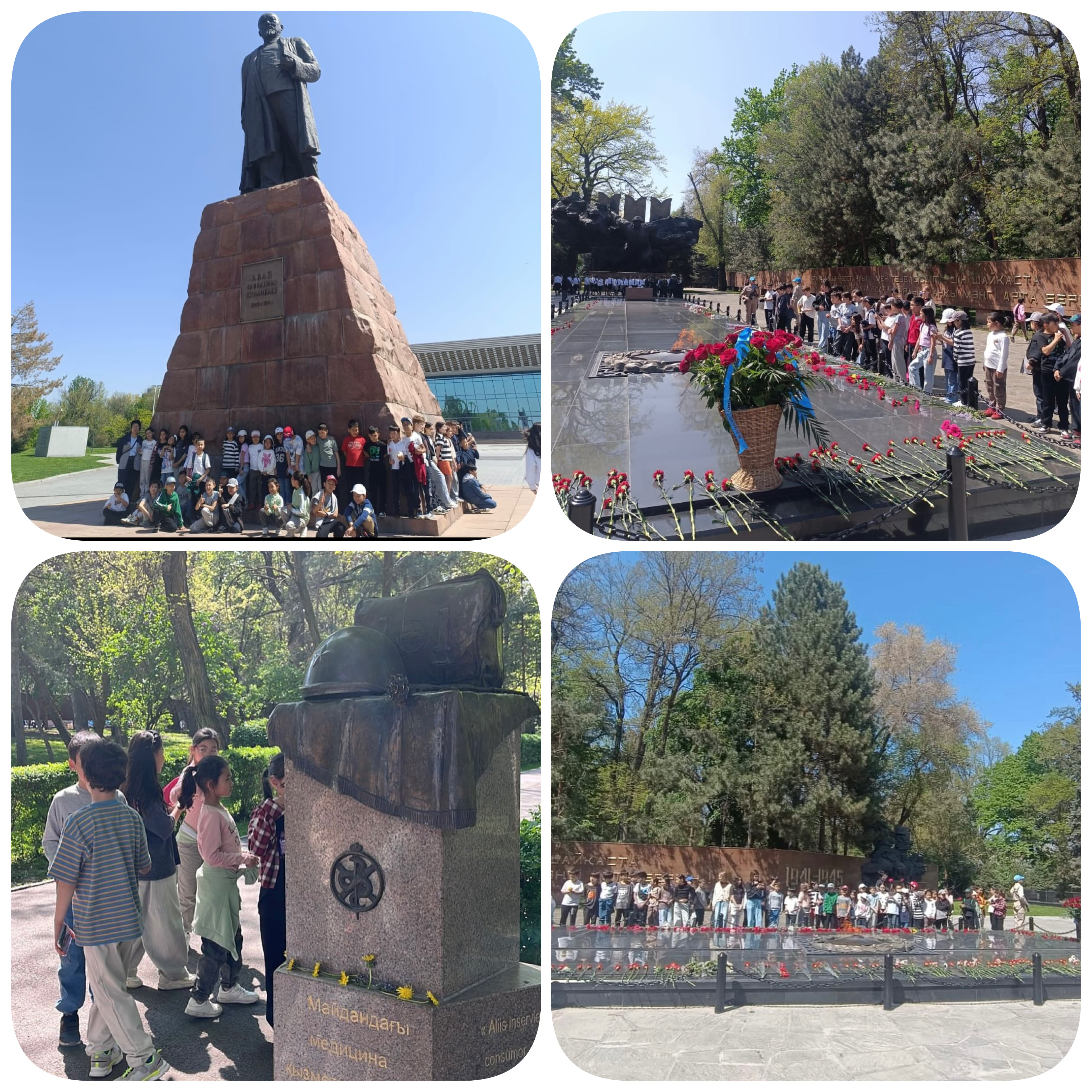 Ученики 2«В» и 4«Б» класса посетили исторические достопримечательности города и возложили цветы к памятнику великого героя Б.Момышұлы.