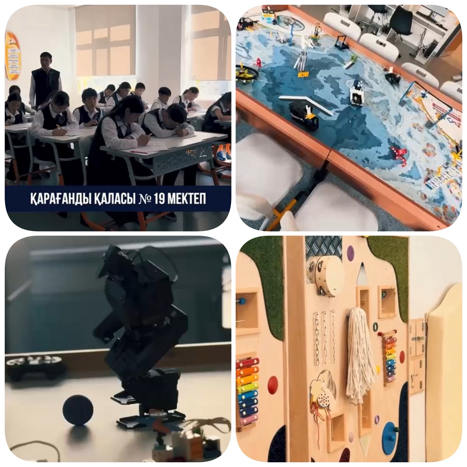 "Келешек мектептері" жобасы аясында салынған Қарағанды қаласындағы №19 мектеп 2000 оқушы орнына арналған.