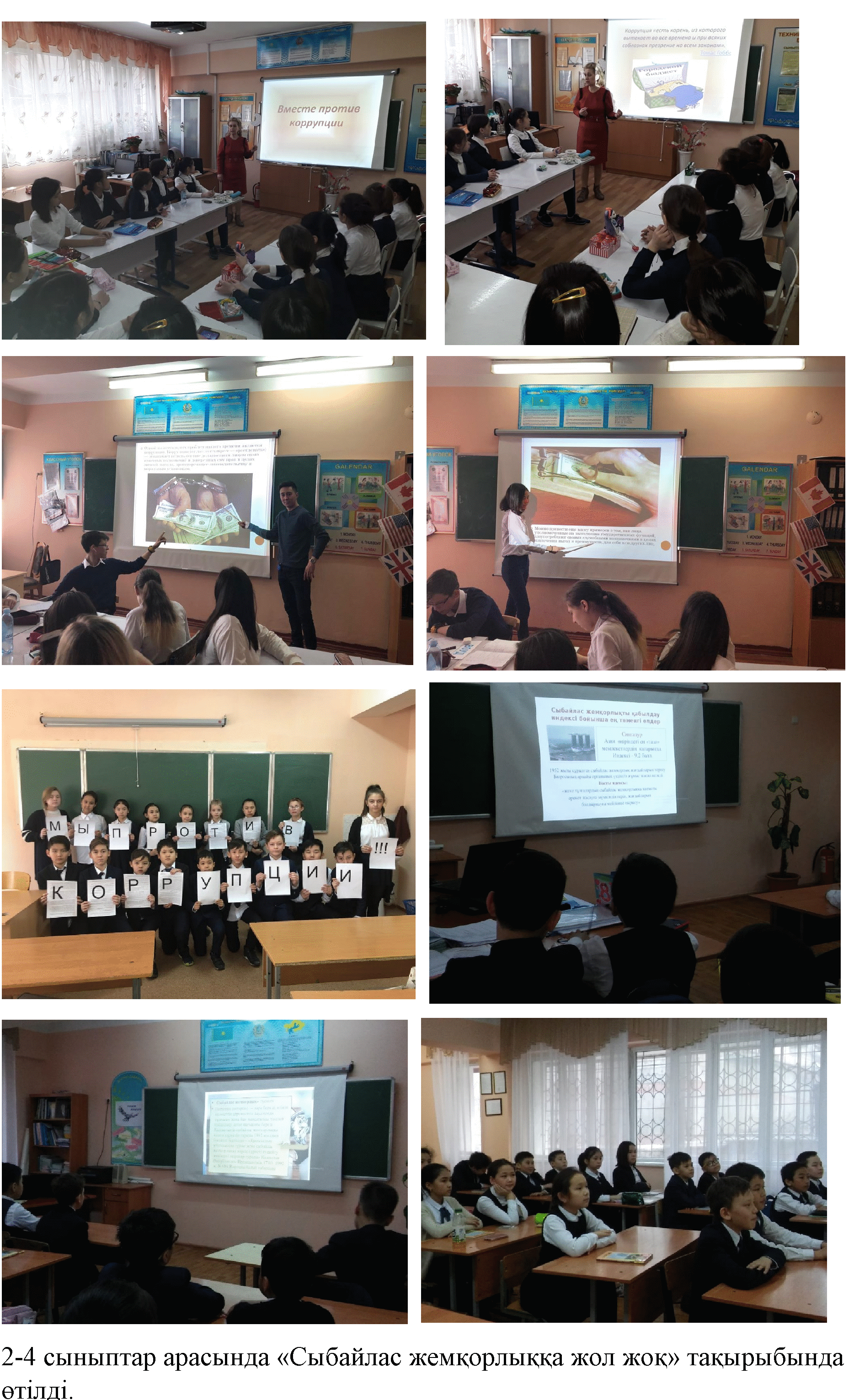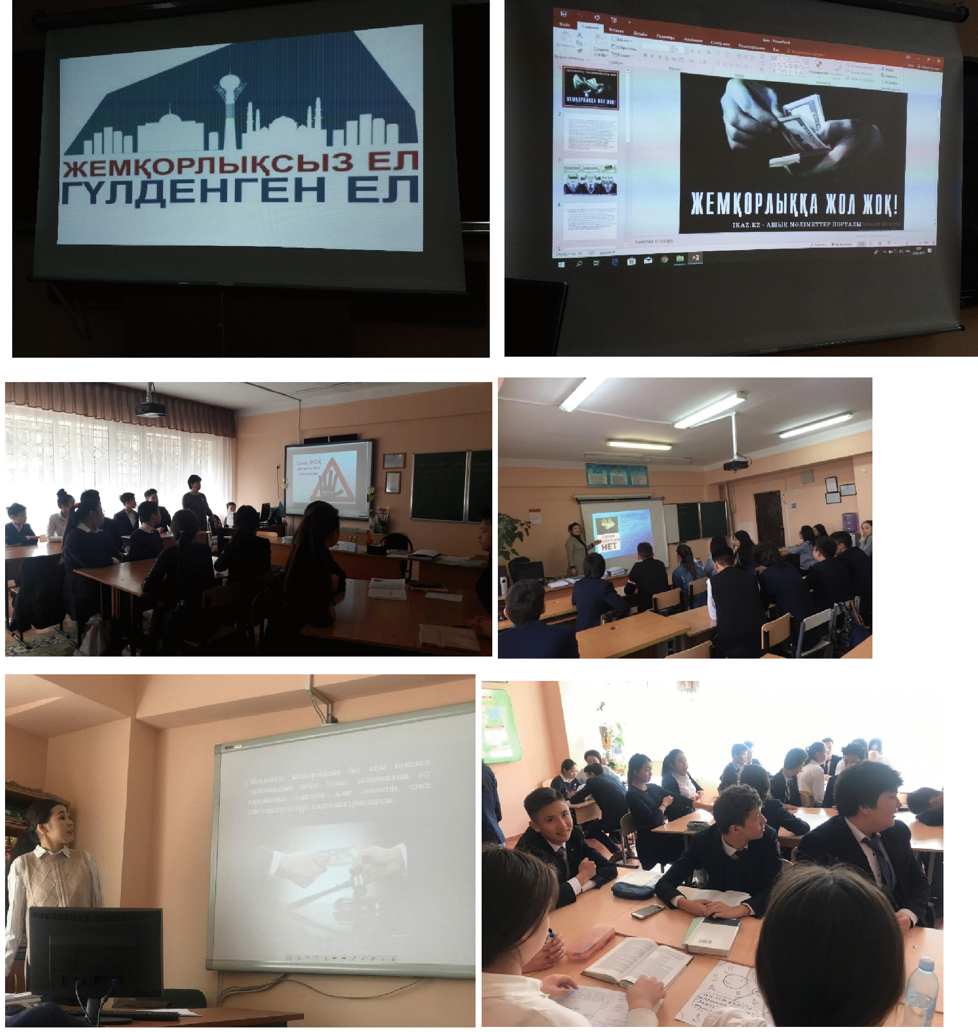 15 наурыз 2019 жылы Б.Момышұлы атындағы №131 мектеп-лицейде «Сыбайлас жемқорлыққа қарсы іс-қимылдағы мемлекеттік саясатты іске асырудағы жастардың рөлі» тақырыбында 5-11 сыныптар арасында бірыңғай сынып сағаттары өтілді.