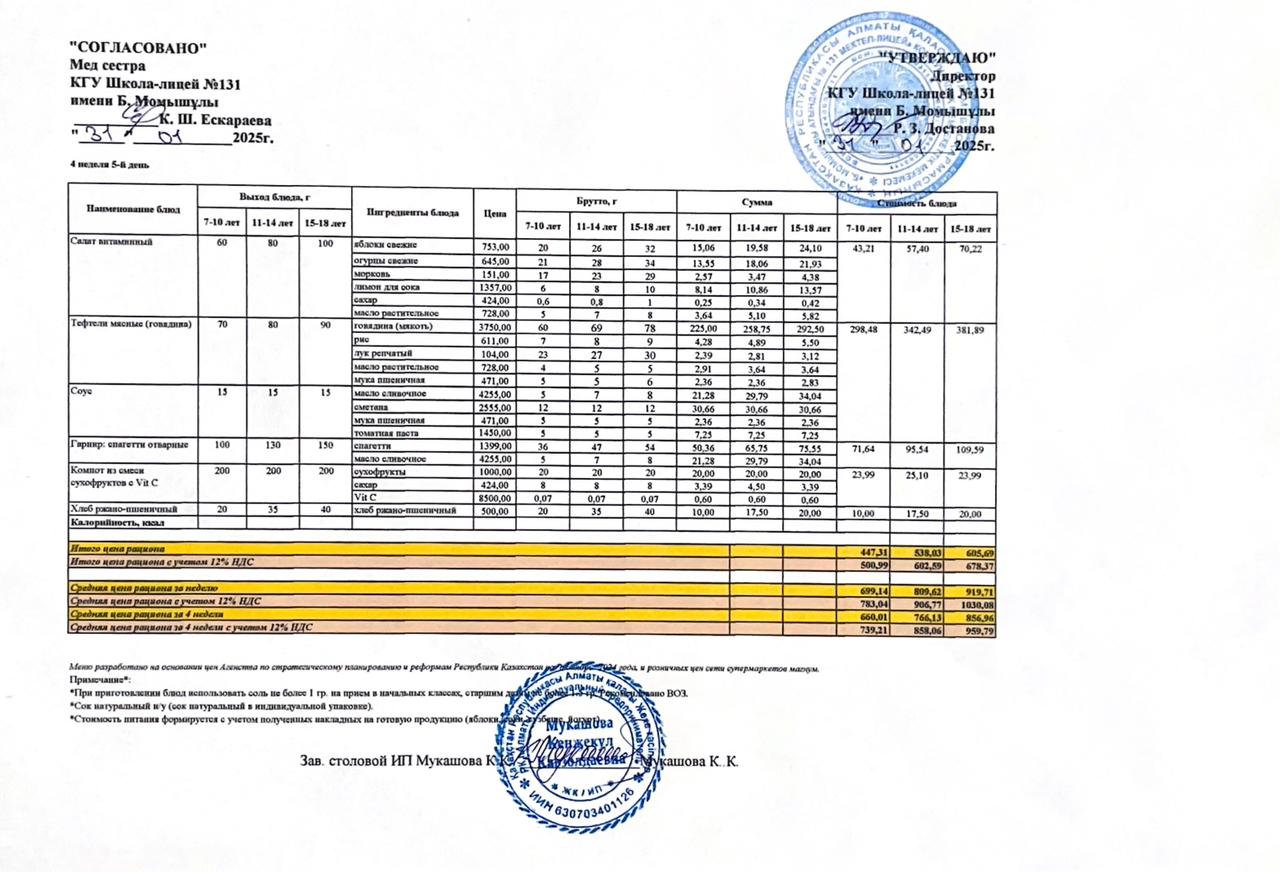 Ас мәзірі (меню) 31.01.2025