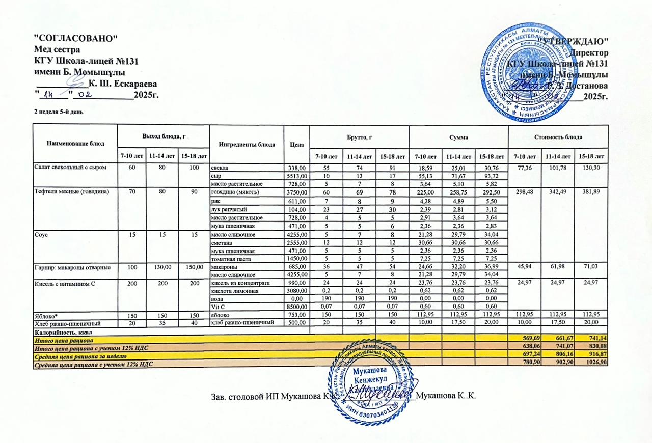 Ас мәзірі (меню) 14.02.2025