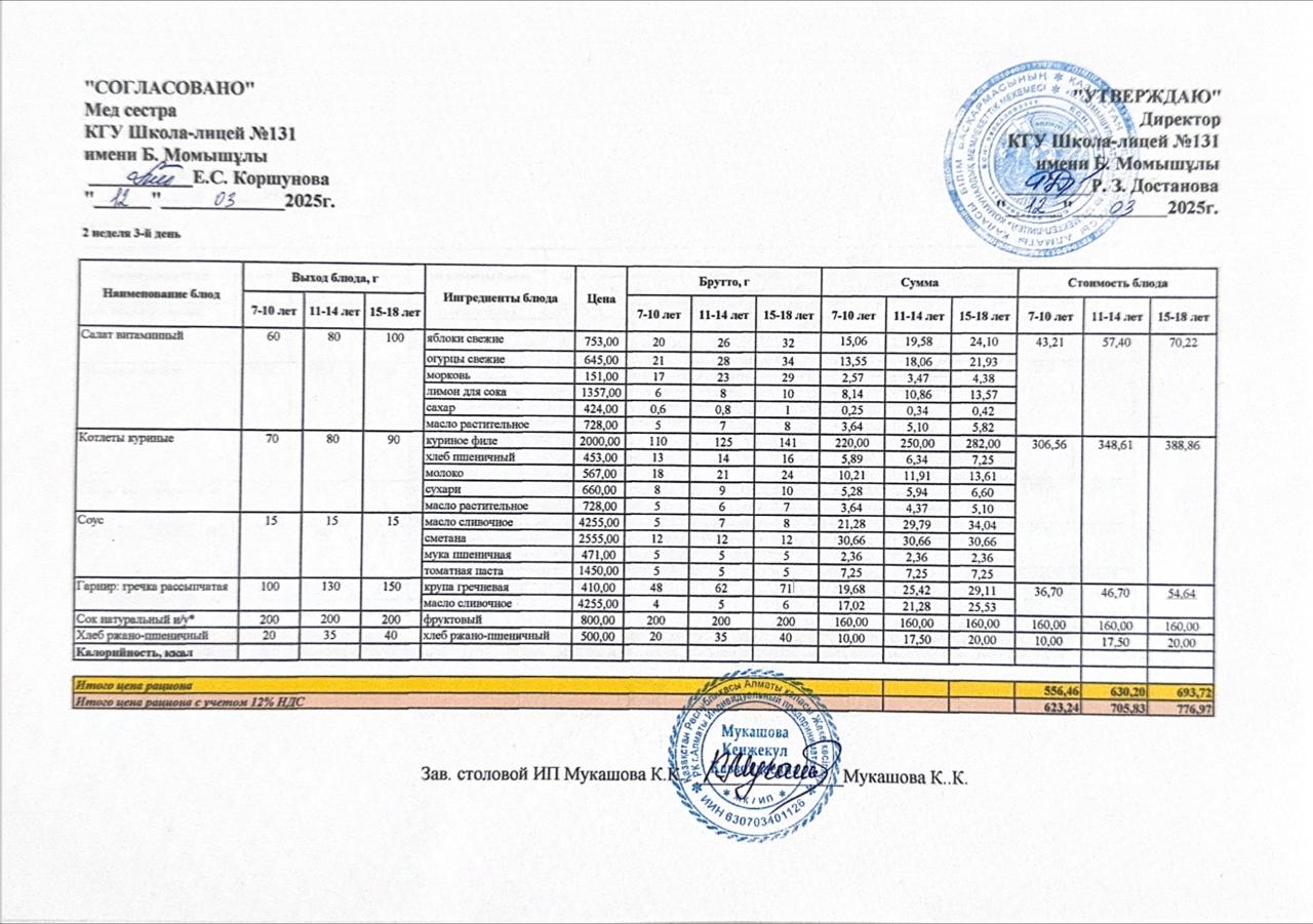 Ас мәзірі (меню) 12.03.2025