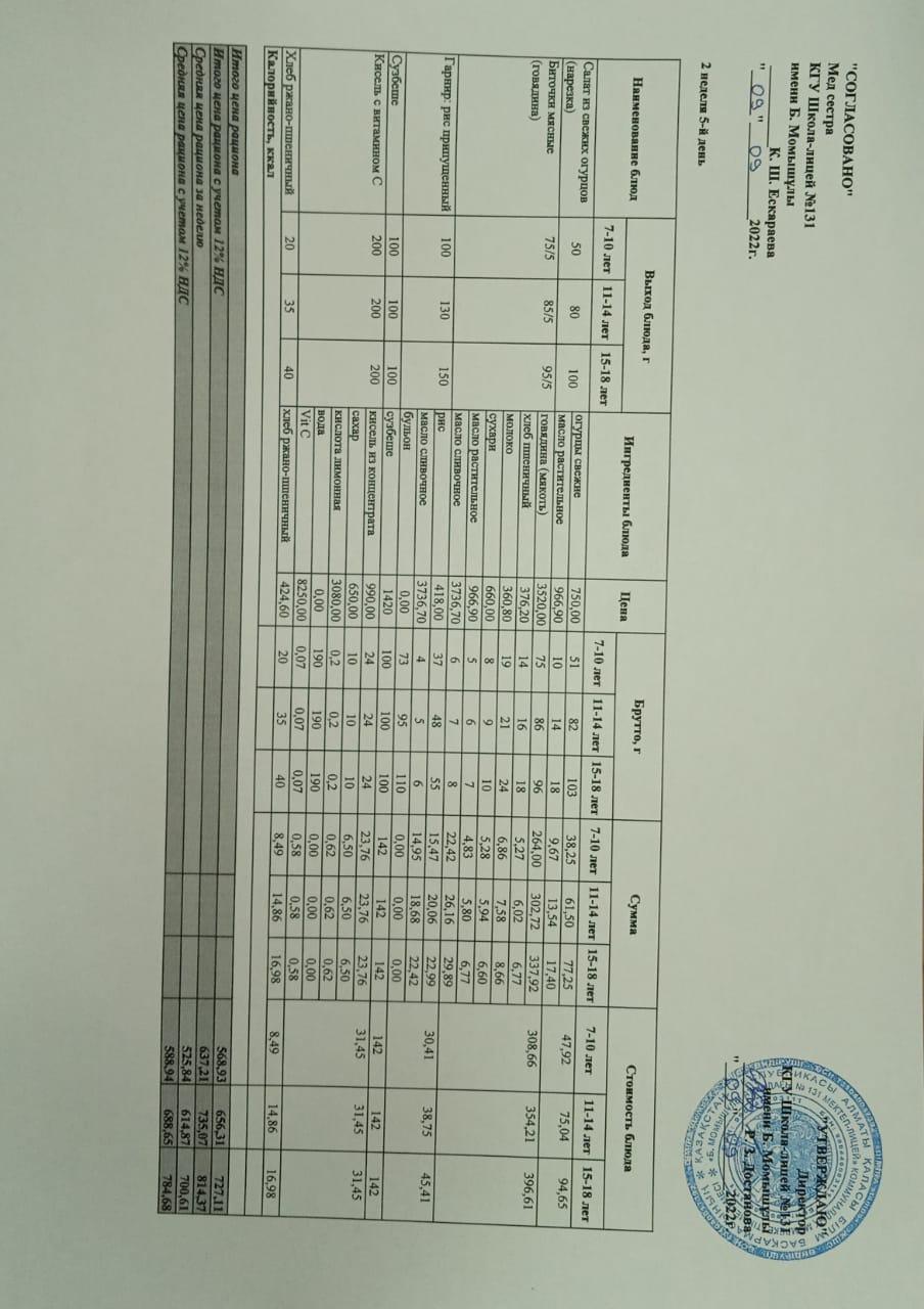 2021-2022 оқу жылы Қыс-көктем ас мәзірі 4 - апта. Меню Зима-весна 4 - неделя