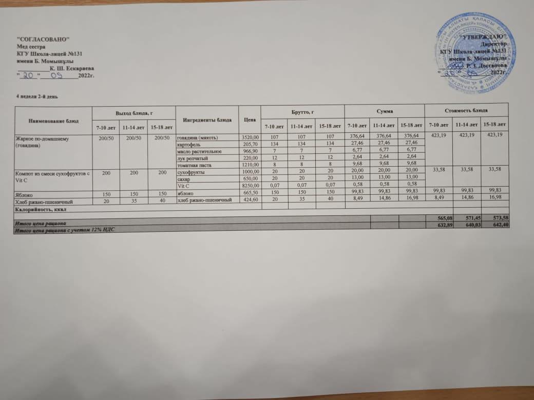 2021-2022 оқу жылы Қыс-көктем ас мәзірі 4 - апта. Меню Зима-весна 4 - неделя
