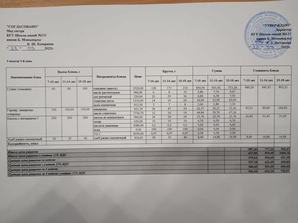 Ас мәзірі (Меню) 22.09.2022 ж.