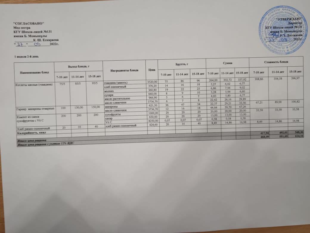 Ас мәзірі (Меню) 22.09.2022 ж.