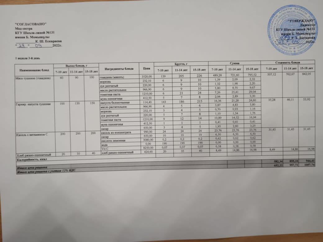 2020 ж. 3- аптасына ас мәзірі. Меню 3 неделя 2020