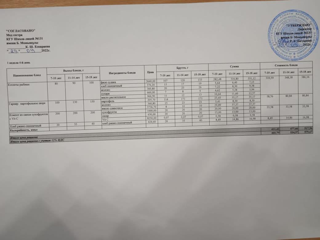 2020 ж. 4 - аптасына ас мәзірі. Меню 4 неделя 2020