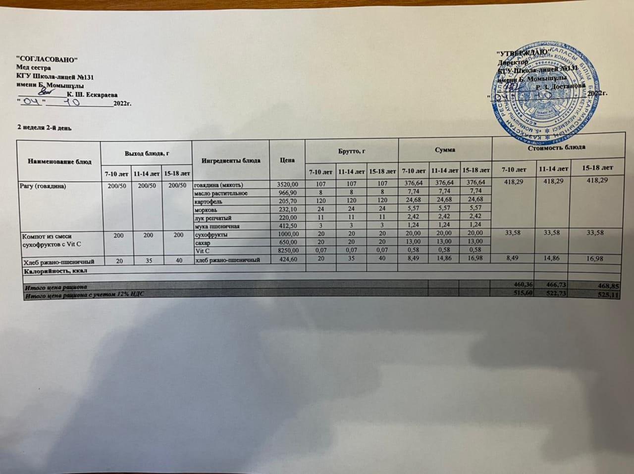 » Ас мәзірі (Меню) 04.10.2022 ж.