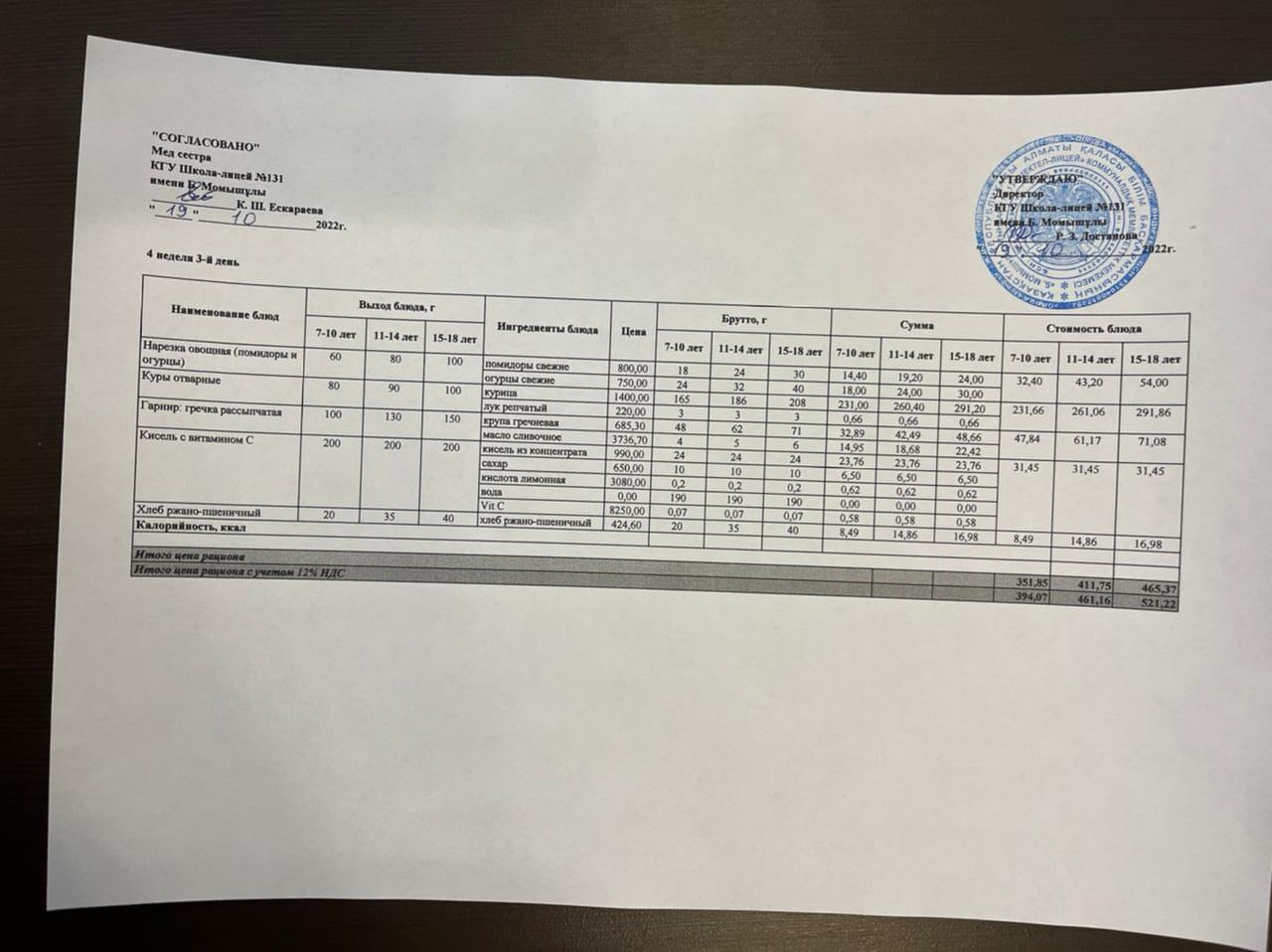 Ас мәзірі (Меню) 04.10.2022 ж.