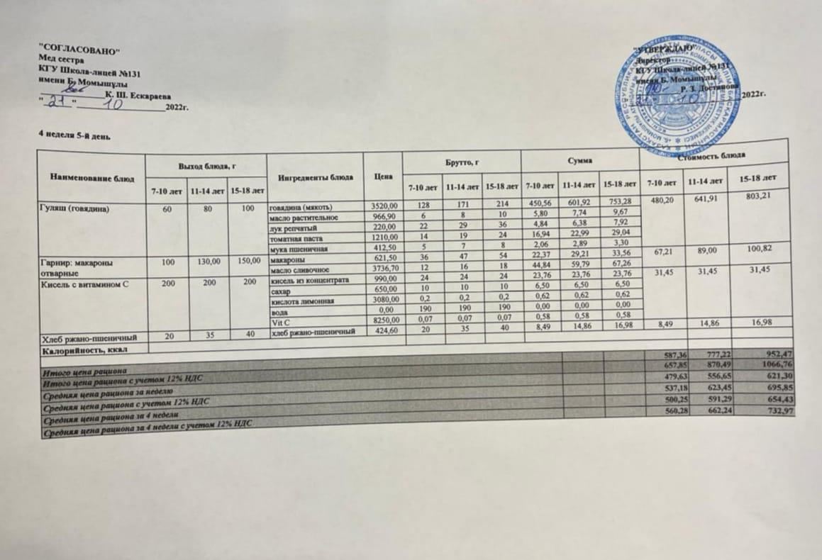 2020 ж. 4 - аптасына ас мәзірі. Меню 4 неделя 2020