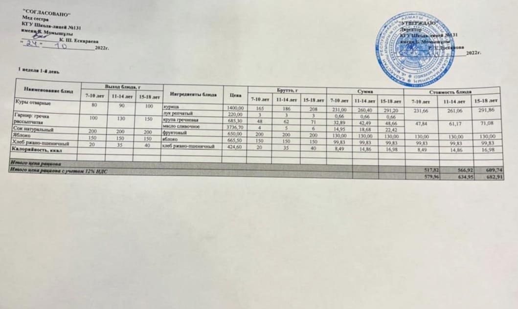 Ас мәзірі (Меню) 12.10.2022 ж.