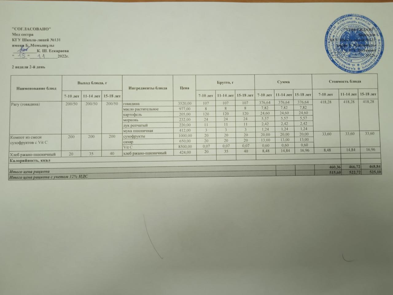» Ас мәзірі (меню) 15.11.2022