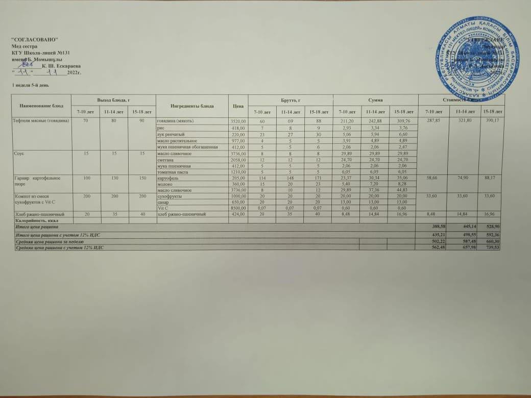 Ас мәзірі (Меню) 07.10.2022 ж.