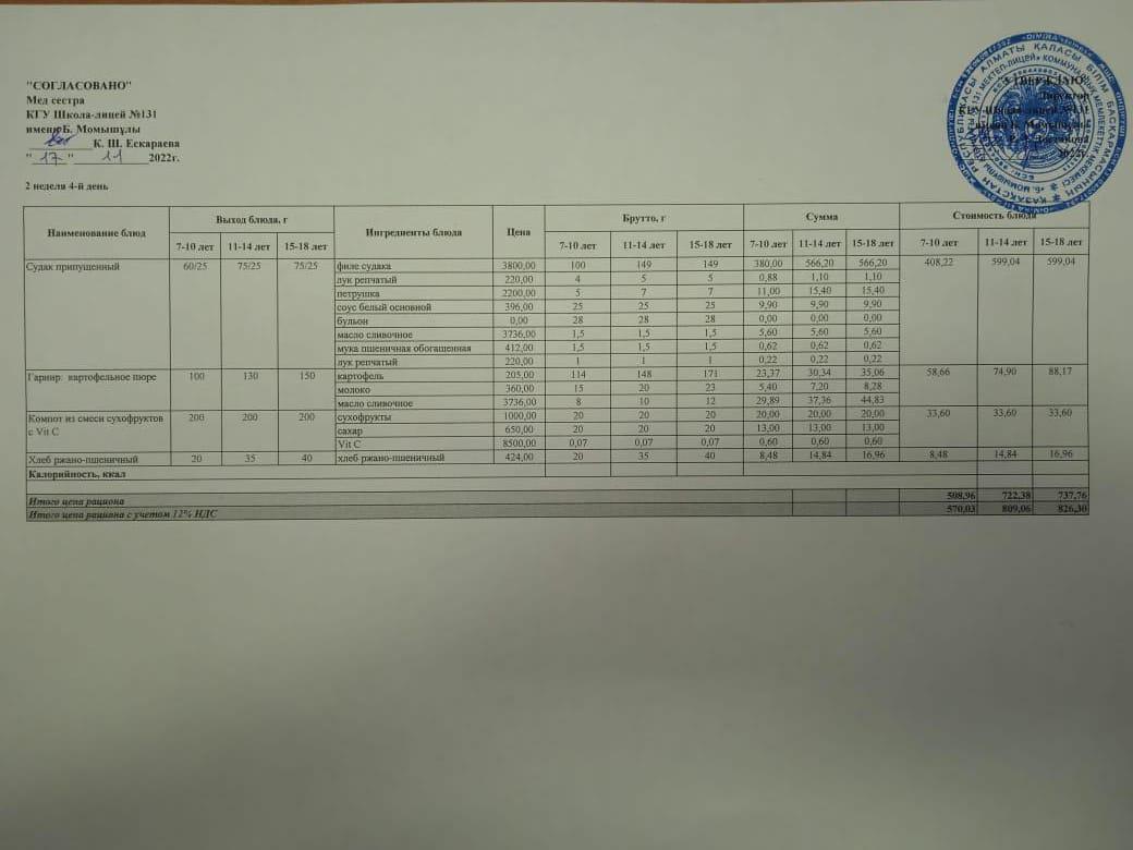 Ас мәзірі (Меню) 06.10.2022 ж.
