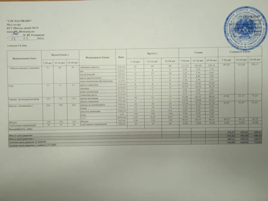 Ас мәзірі (Меню) 12.10.2022 ж.