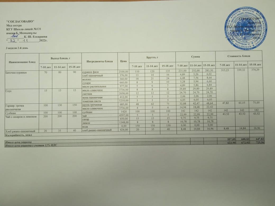 Ас мәзірі (Меню) 12.10.2022 ж.