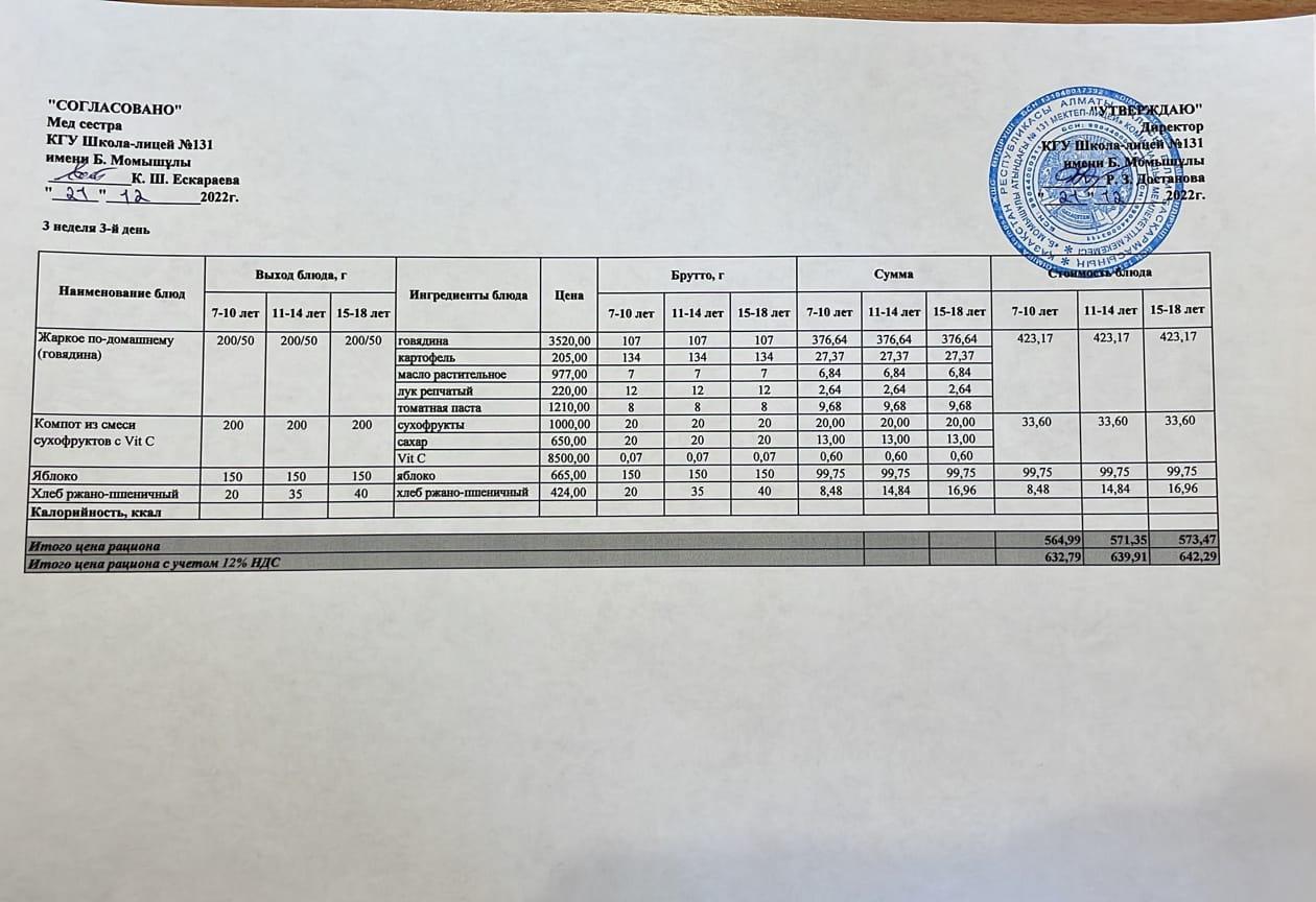 2021-2022 оқу жылы Қыс-көктем ас мәзірі 3 - апта. Меню Зима-весна 3 - неделя