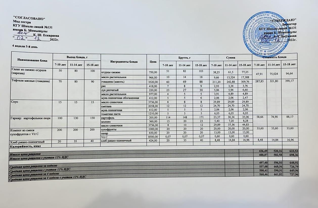 2021-2022 оқу жылы Қыс-көктем ас мәзірі 4 - апта. Меню Зима-весна 4 - неделя