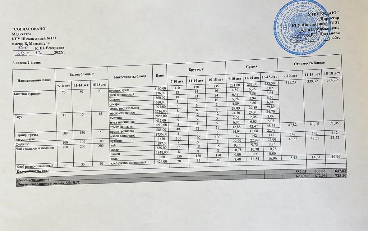 » Ас мәзірі (меню) 20.12.2022