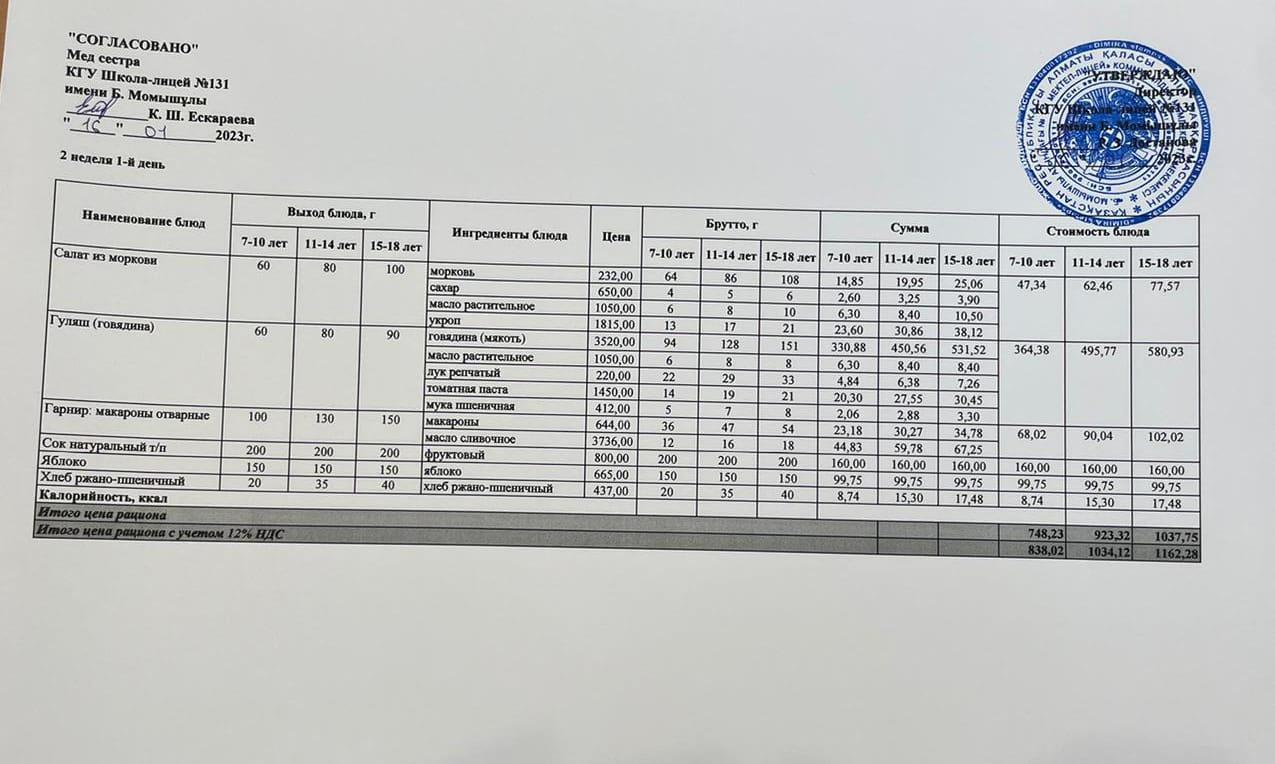 » Ас мәзірі (меню) 16.01.2023