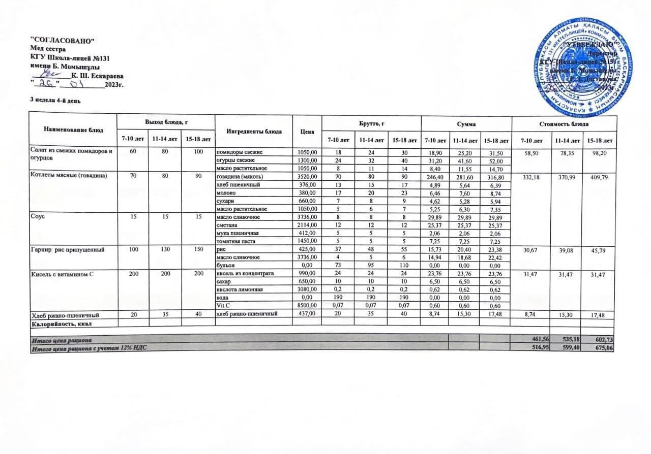 Ас мәзірі (меню) 26.01.2023
